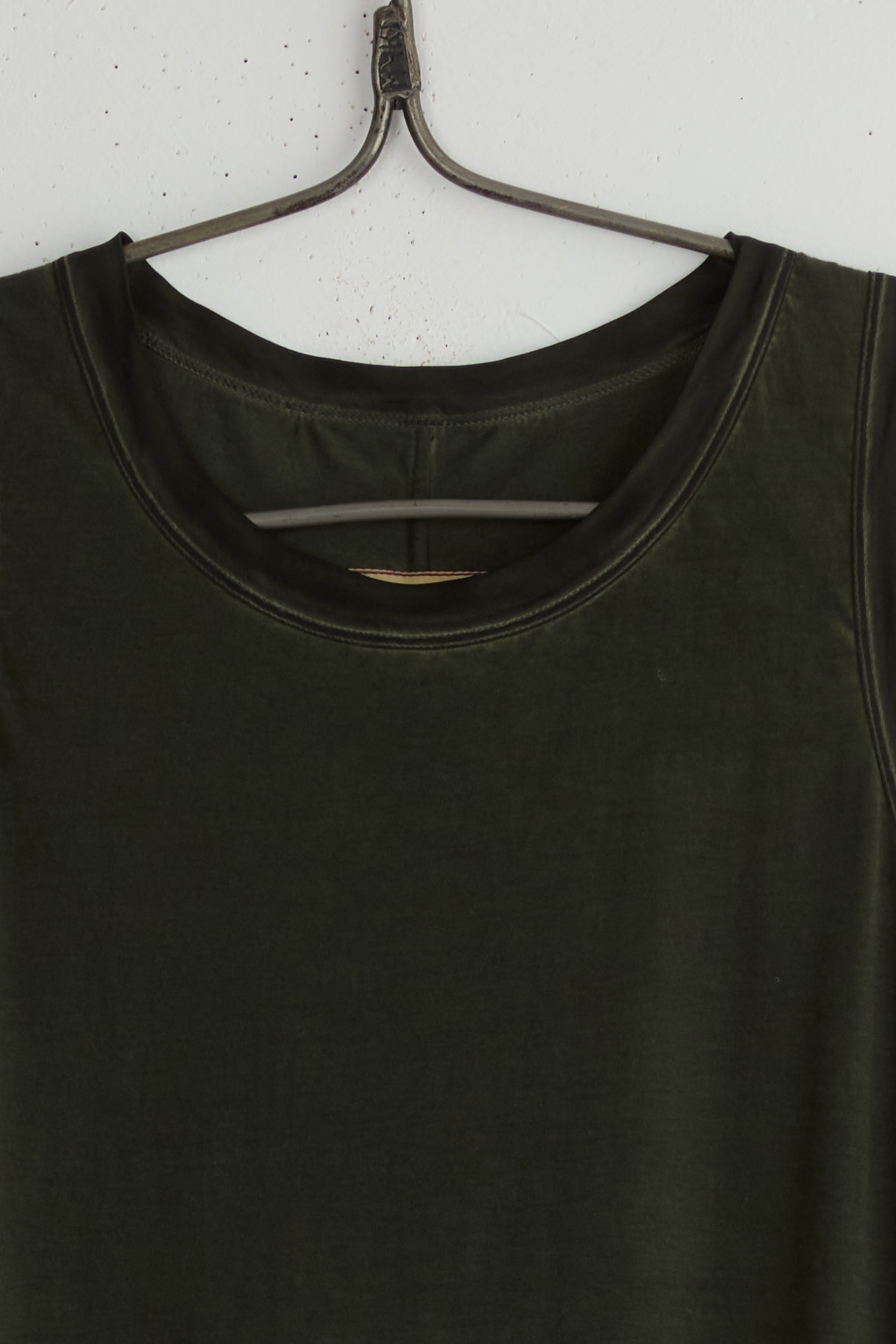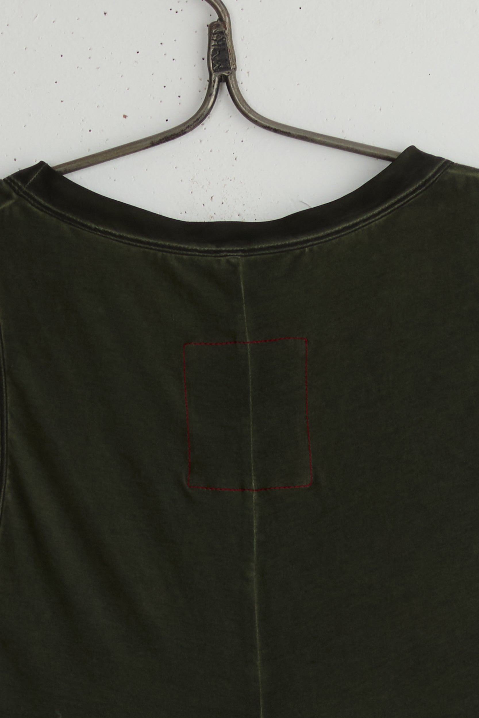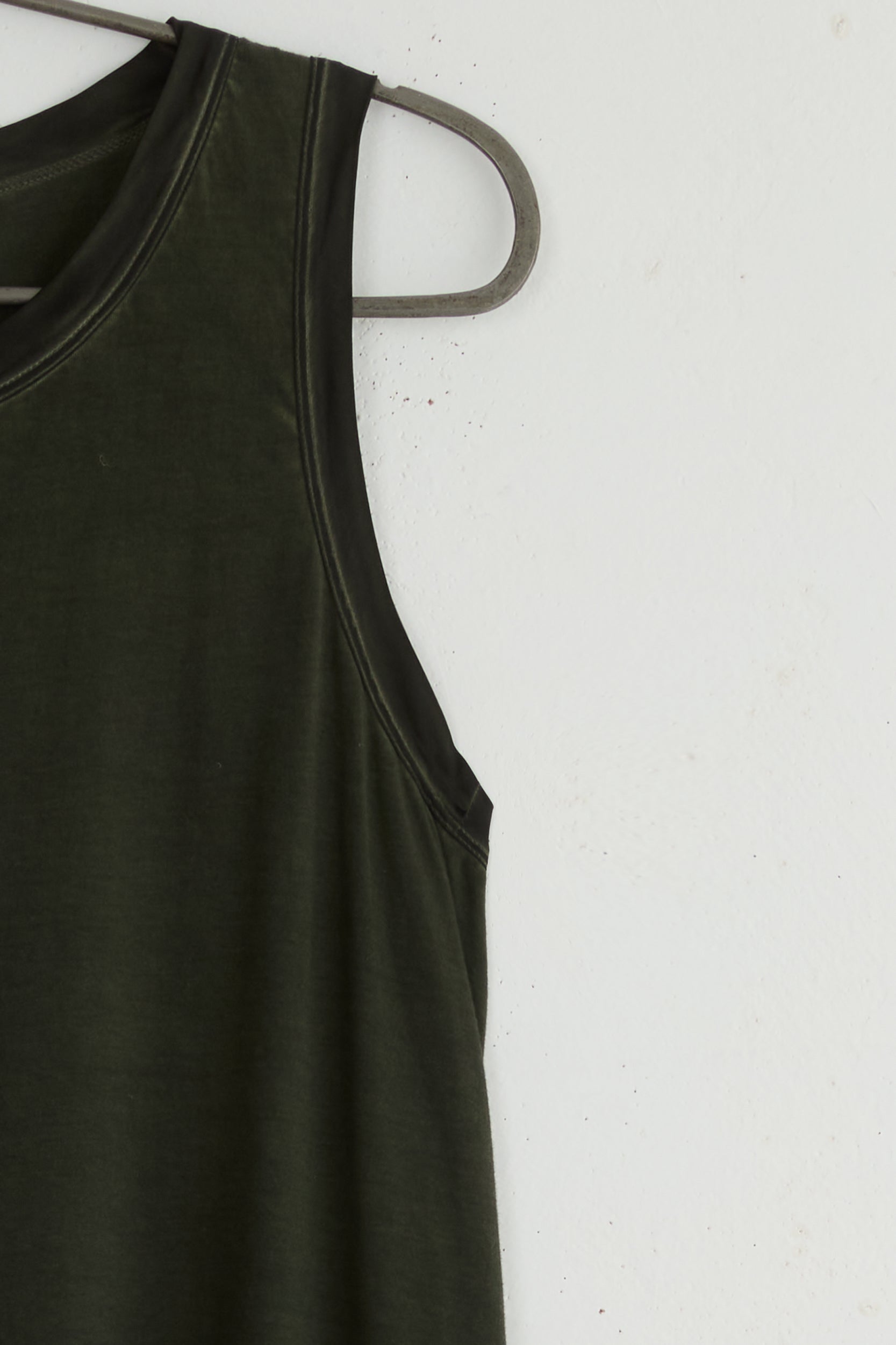 Data dress from the house of Chinese designer Uma Wang. A light full length dress made from soft cotton with a flowy silk panel along the back. Seeveles with a relaxed, slightly flared silhouette, a crew neck, raw hem and uneven coloring.