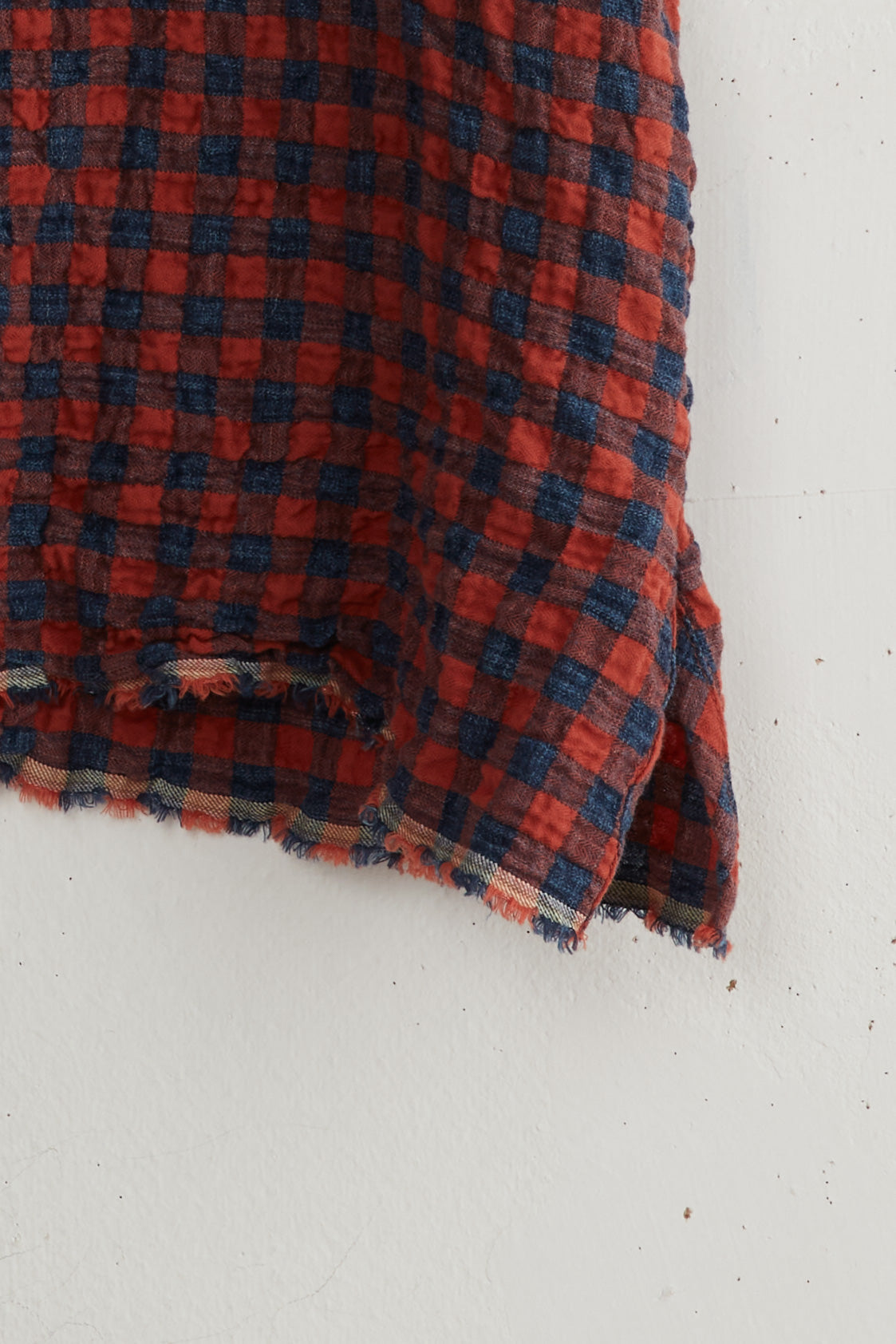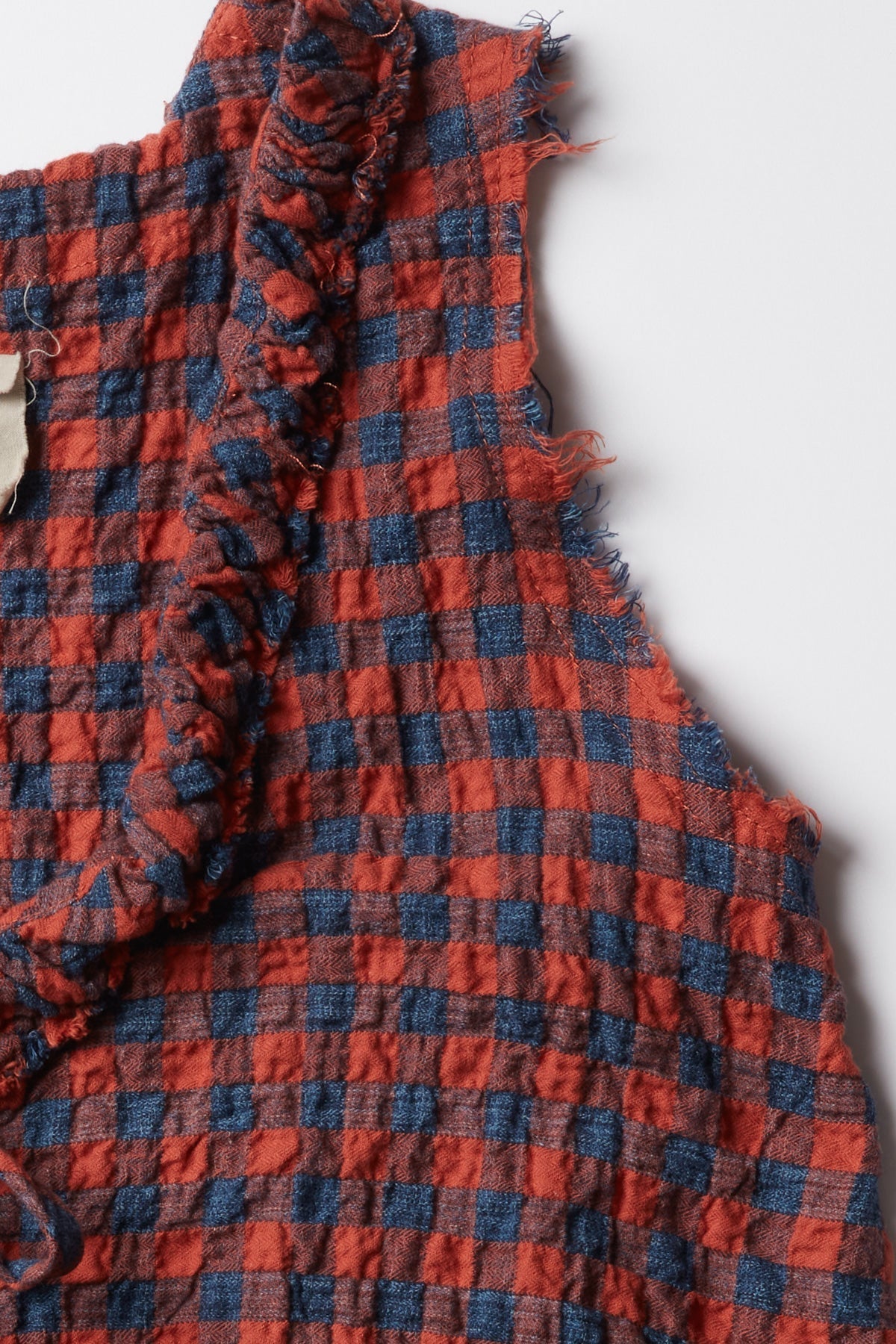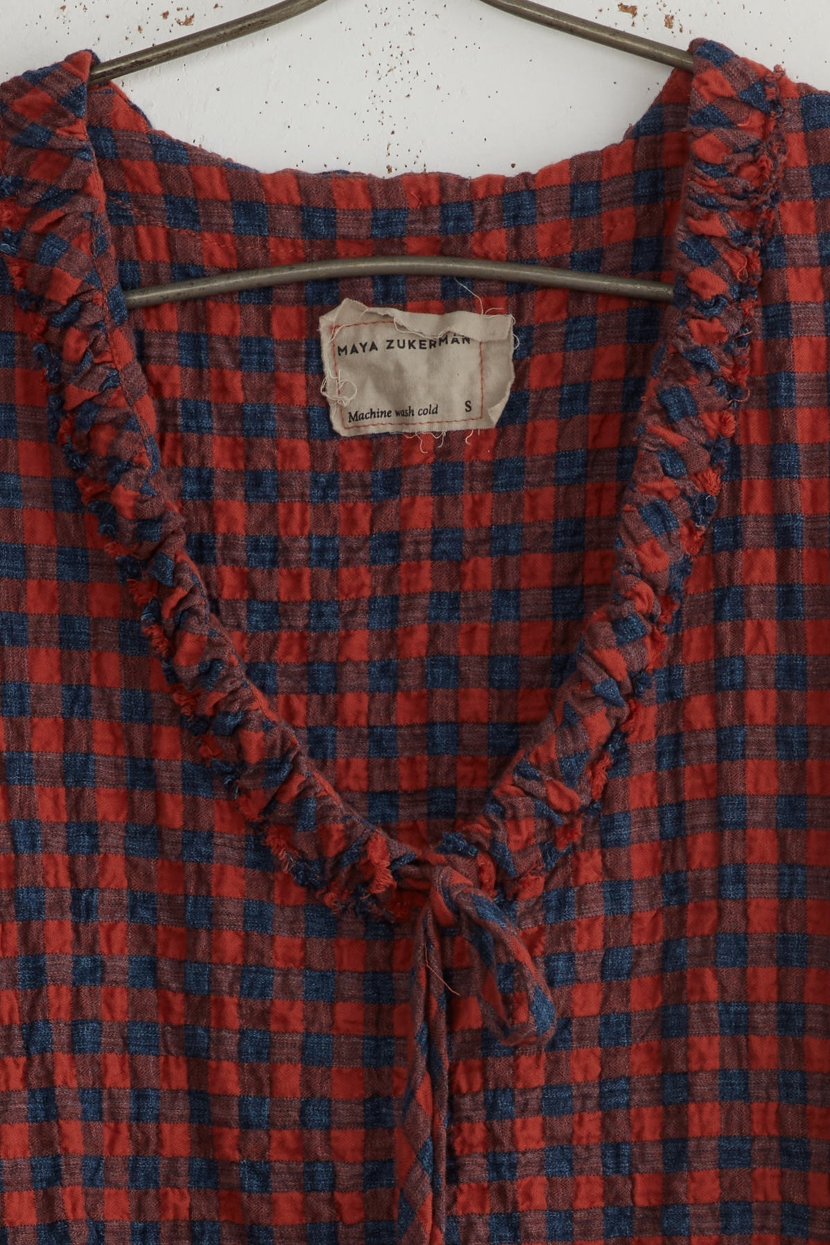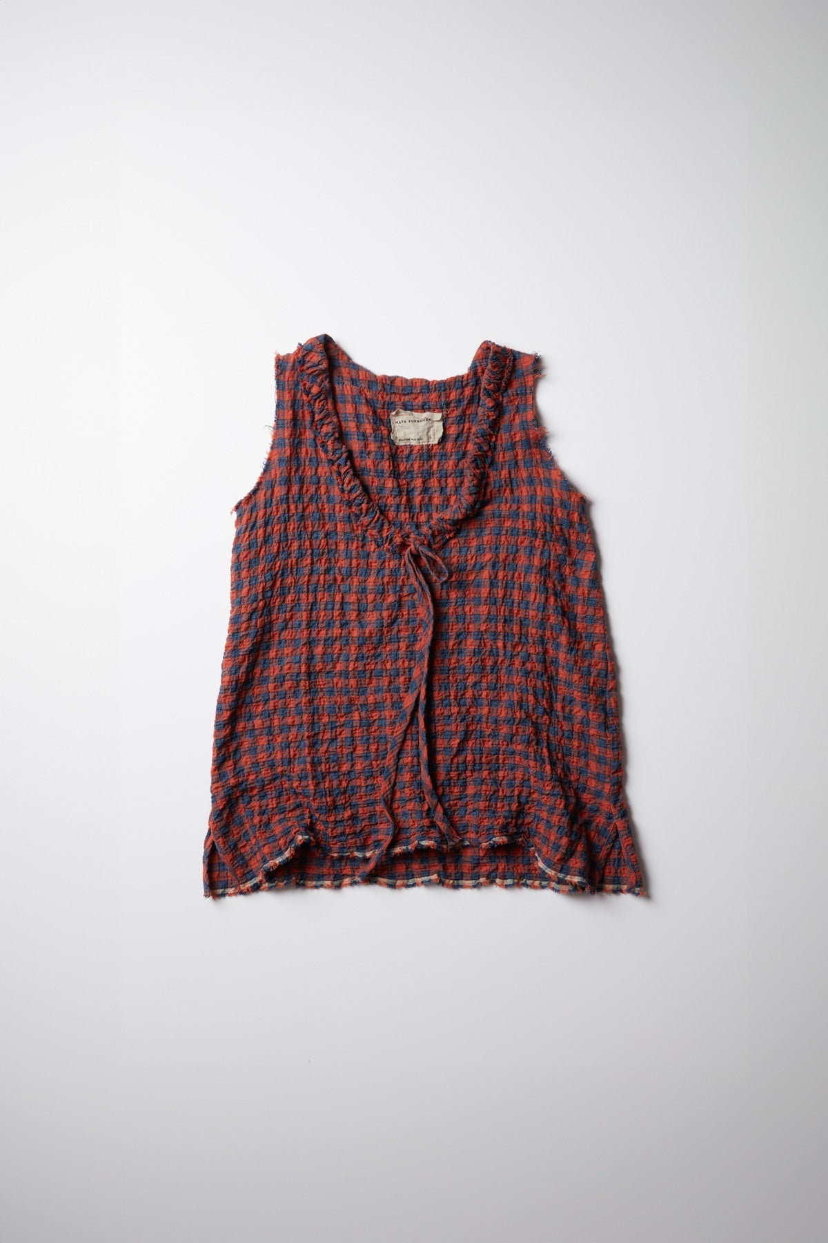 Silavi shrinky check tank top by Maya Zukerman is a super soft sleeveless shirt with a relaxed fit and a deep v-neck. Made of a stretchy crinkled cotton with a checked pattern, the neck is laced with drawstring from the same material, making it both adjustable and chic. Details include raw hems and arm holes and small side slits.
