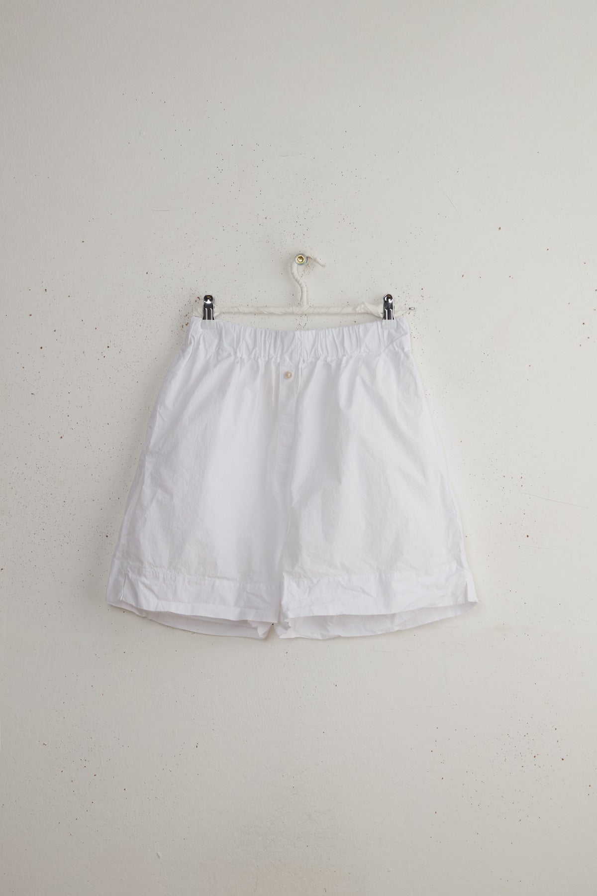 Sonn pants by Maya Zukerman. Light and breezy paper cotton shorts. A loose fit with two side pockets, signature back pockets, elastic waist and false fly with a hand dyed dorset button.