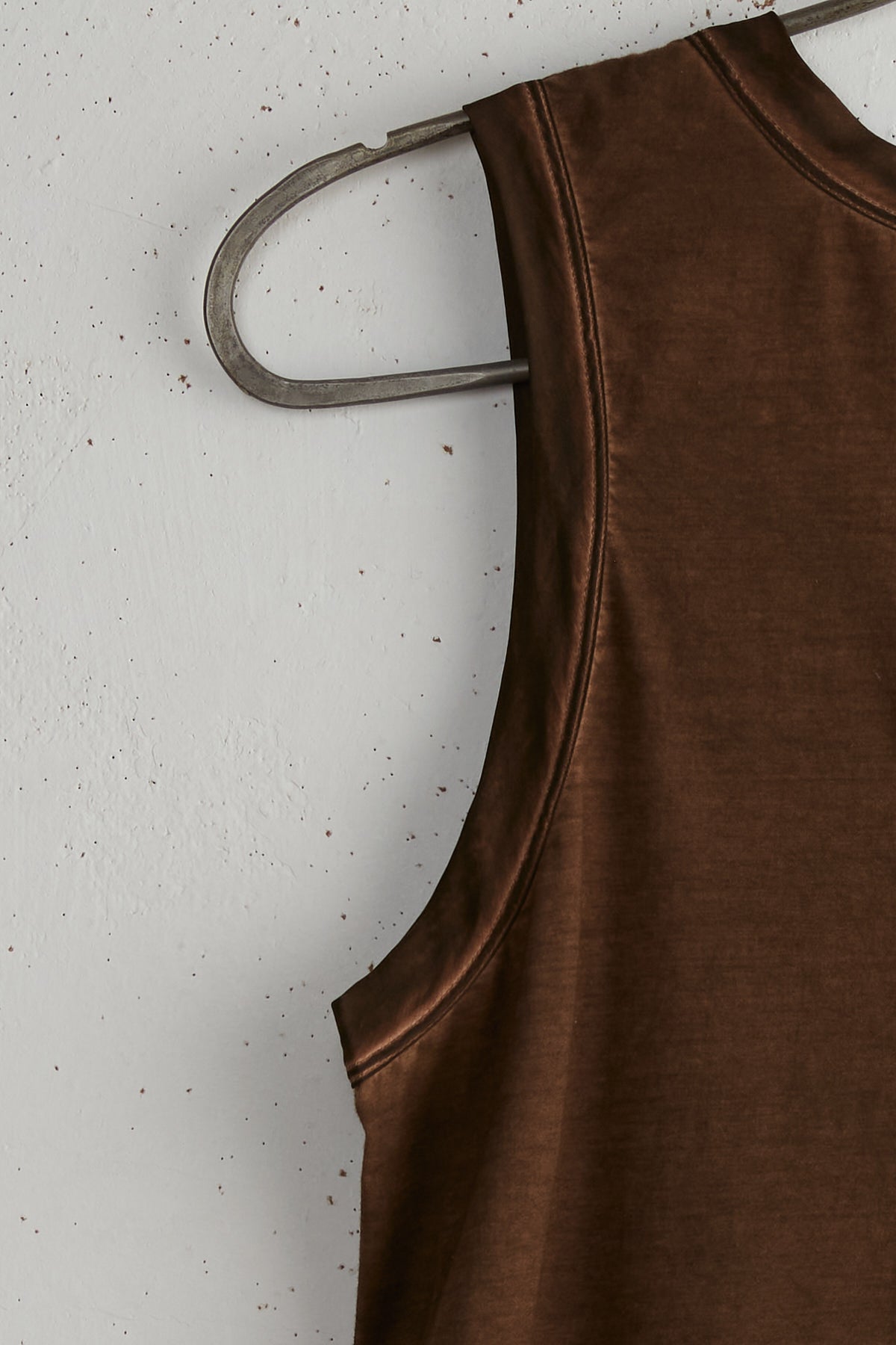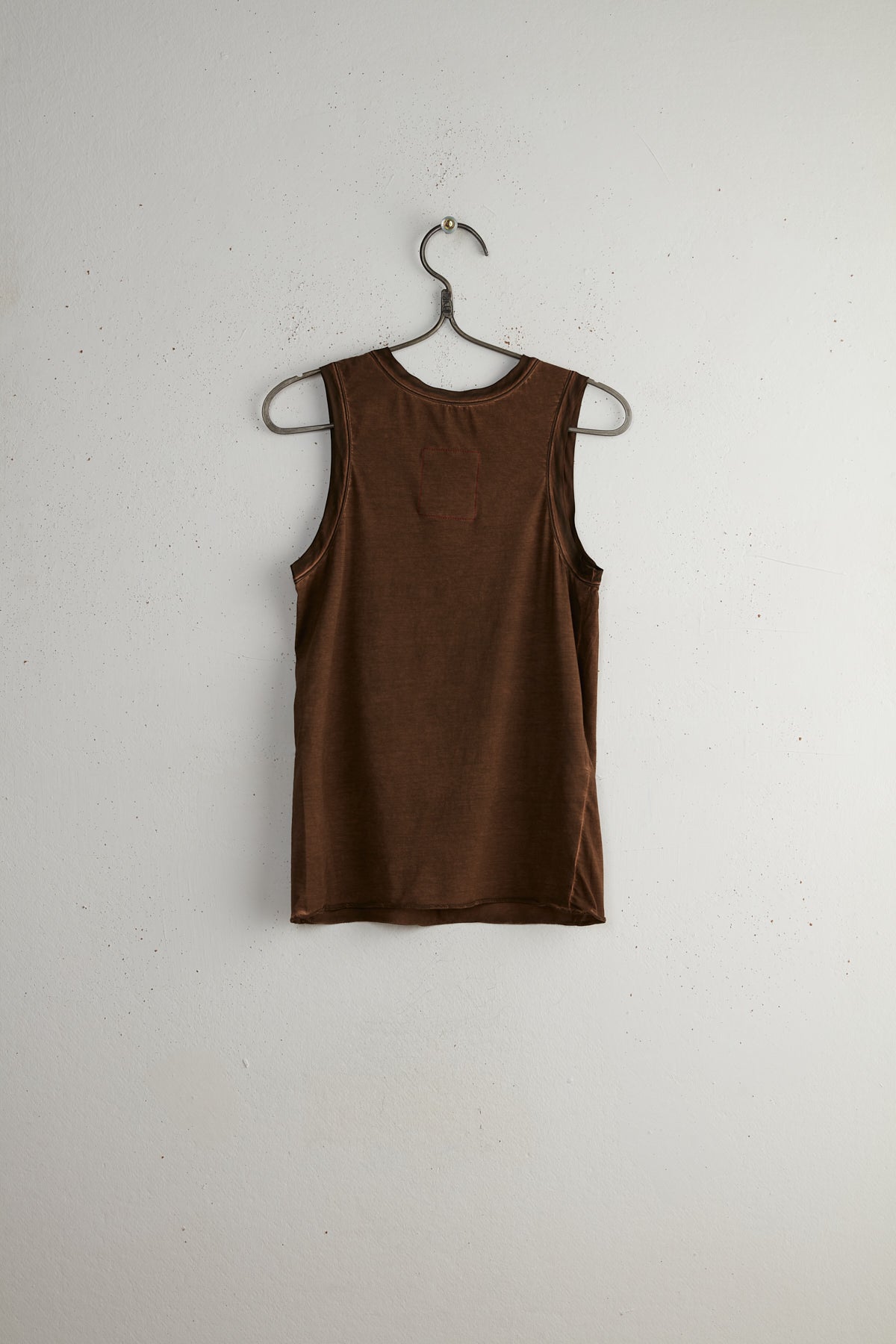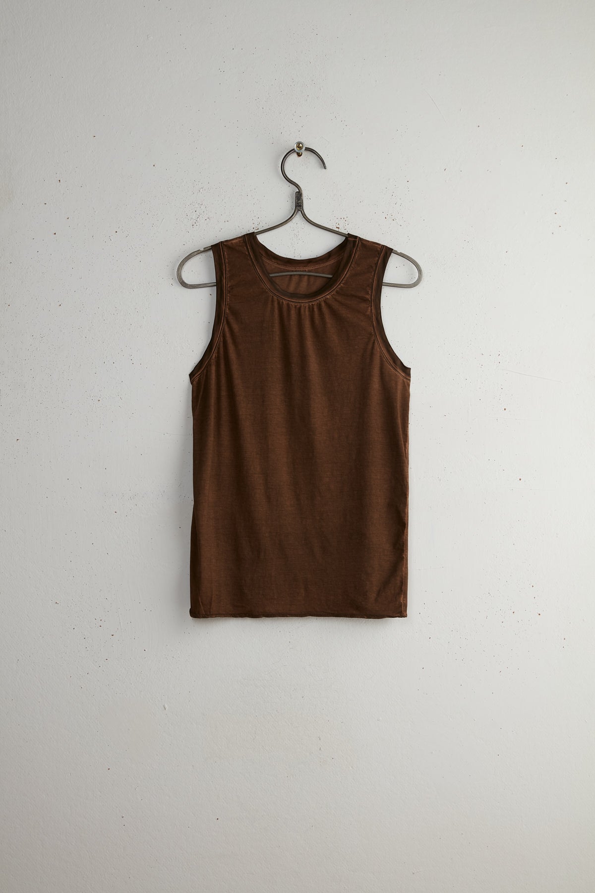 SLV TOP from the house of Chinese designer Uma Wang. Stretchy and soft jersey cotton tank top, this sleeveless shirt has a round neck and straight hem, simple and comfortable regular fit with contrast stitches design.