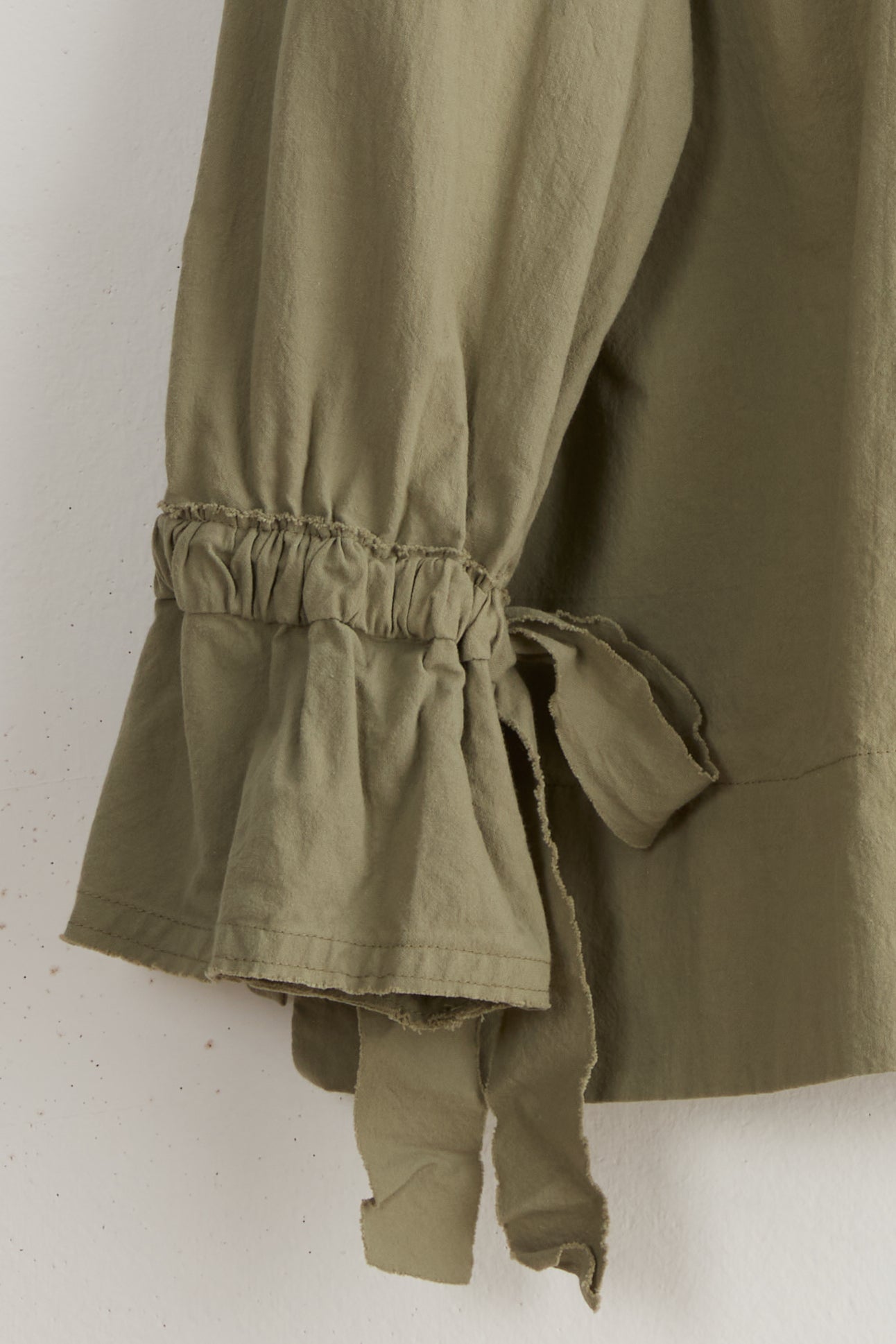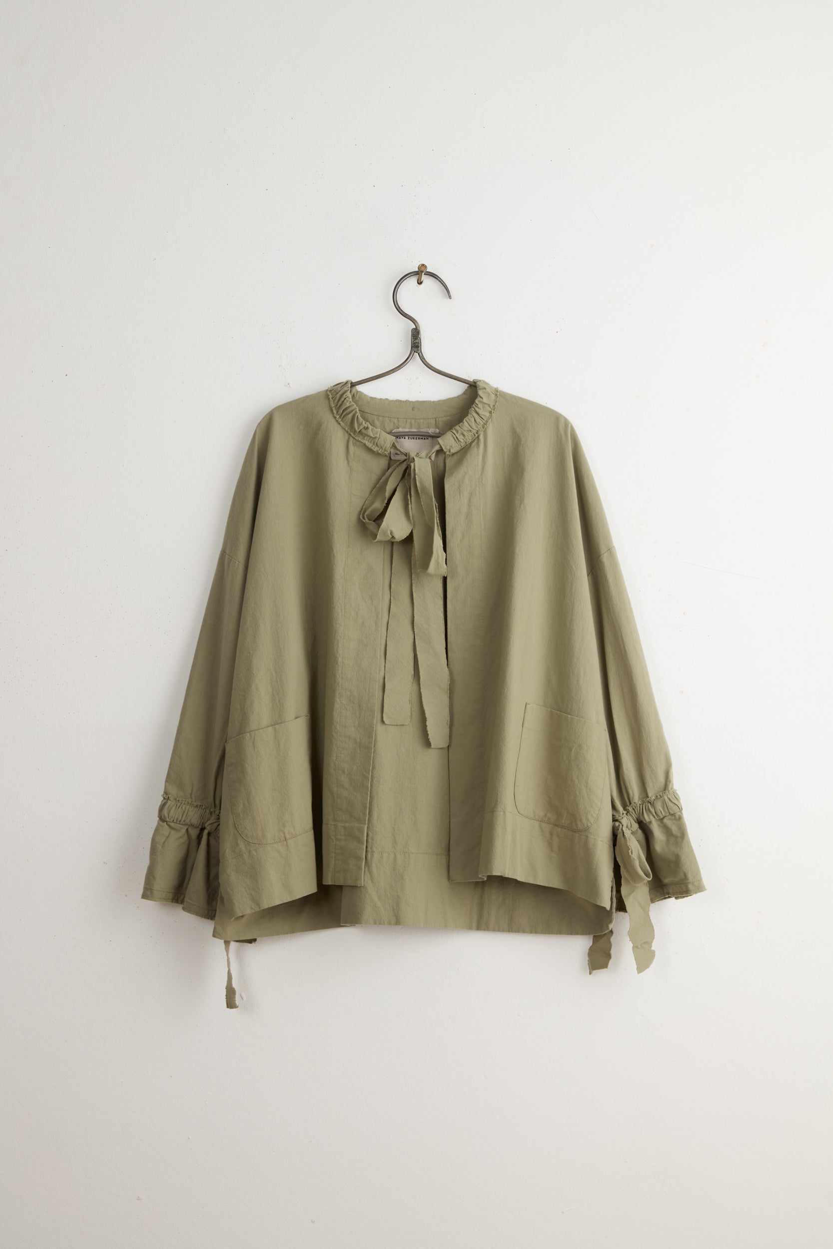 Violet Jacket by Maya Zukerman. A light, casual jacket made of a mid-gauge cotton fabric. a slightly boxy, relaxed fit. The neck fastening and the extra-long sleeves are laced with ribbons made from the same material.