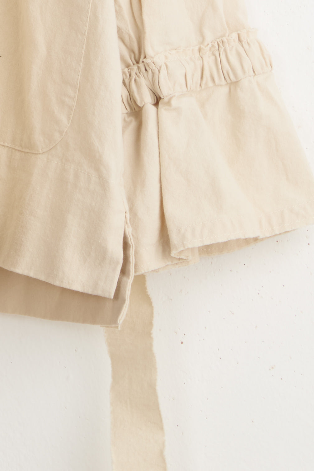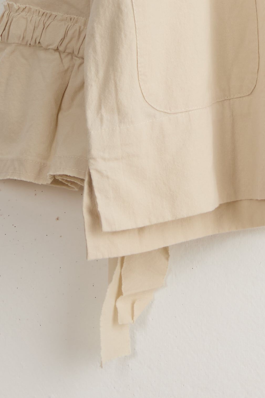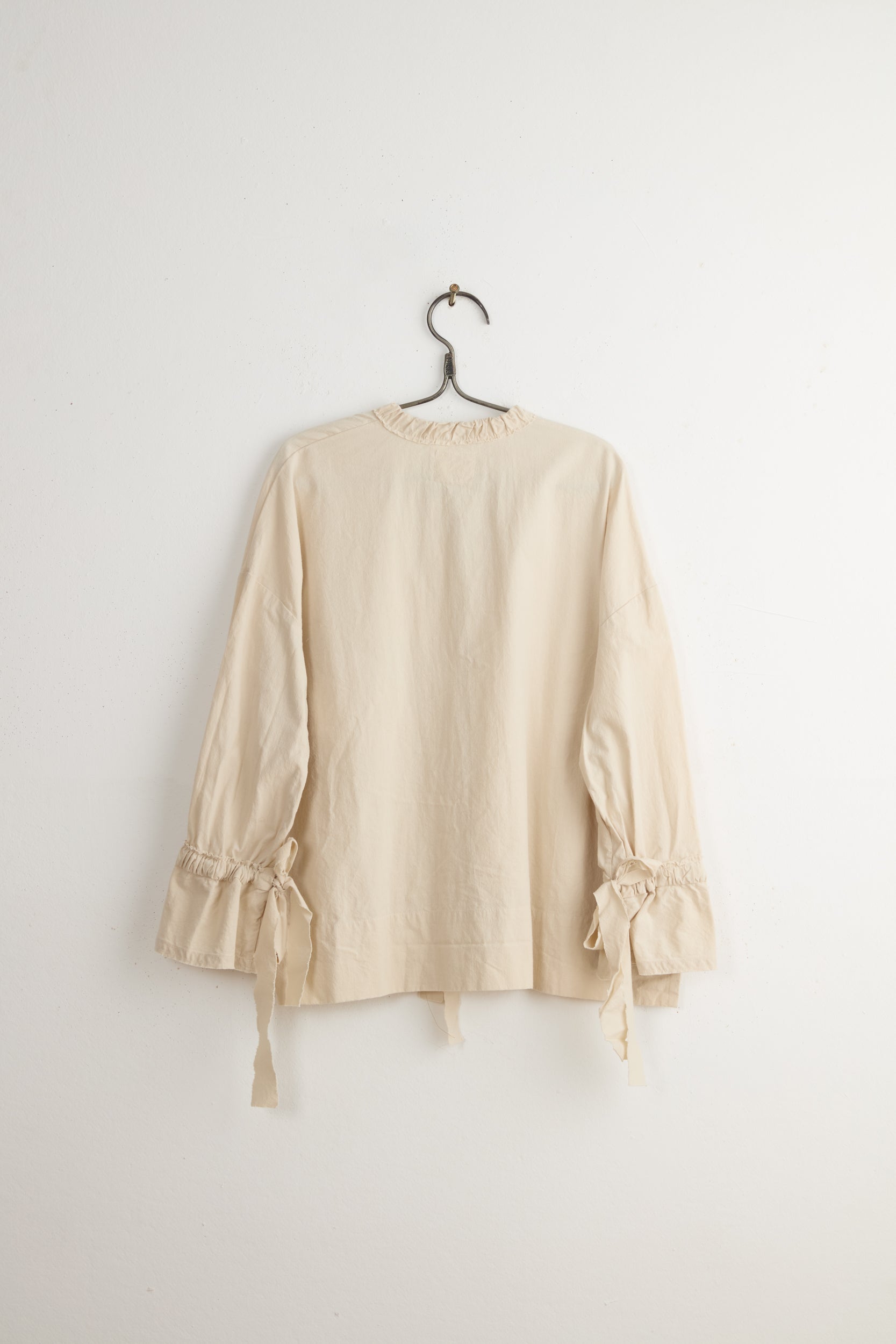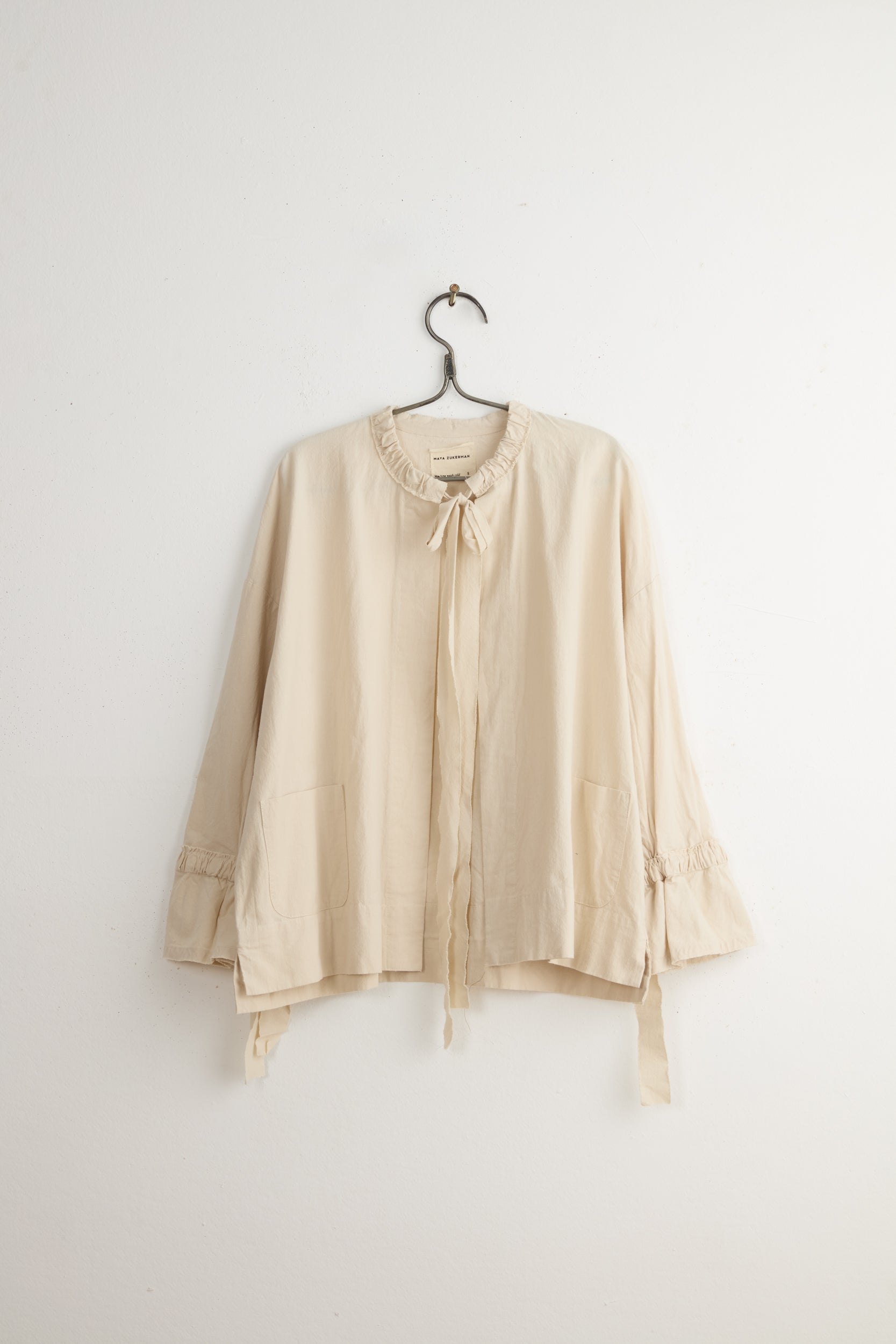 Violet Jacket by Maya Zukerman. A light, casual jacket made of a mid-gauge cotton fabric. a slightly boxy, relaxed fit. The neck fastening and the extra-long sleeves are laced with ribbons made from the same material.