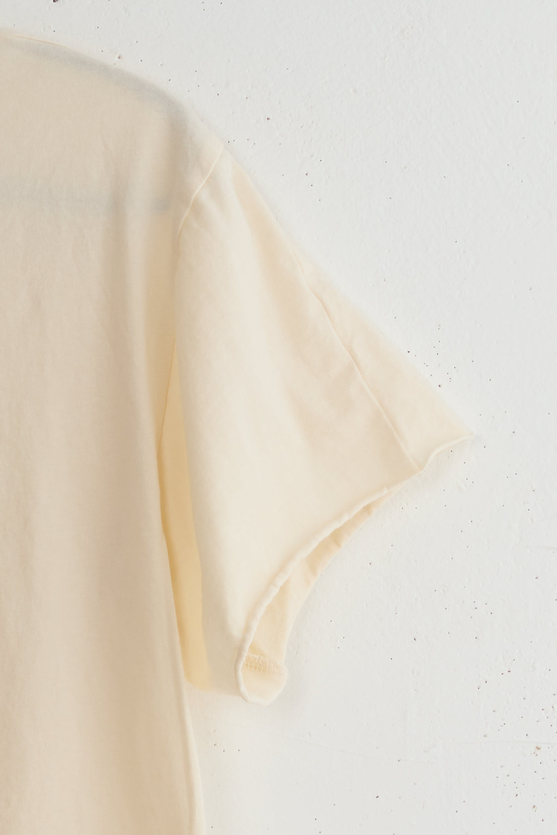 Vivi T-shirt is a Maya Zukerman staple. A colorful, soft cotton t-shirt with a basic, regular fit. A simple unisex round neck tee with short sleeves and raw hemlines. The side seams are sawn in a diagonal line and so are the shoulder seams.