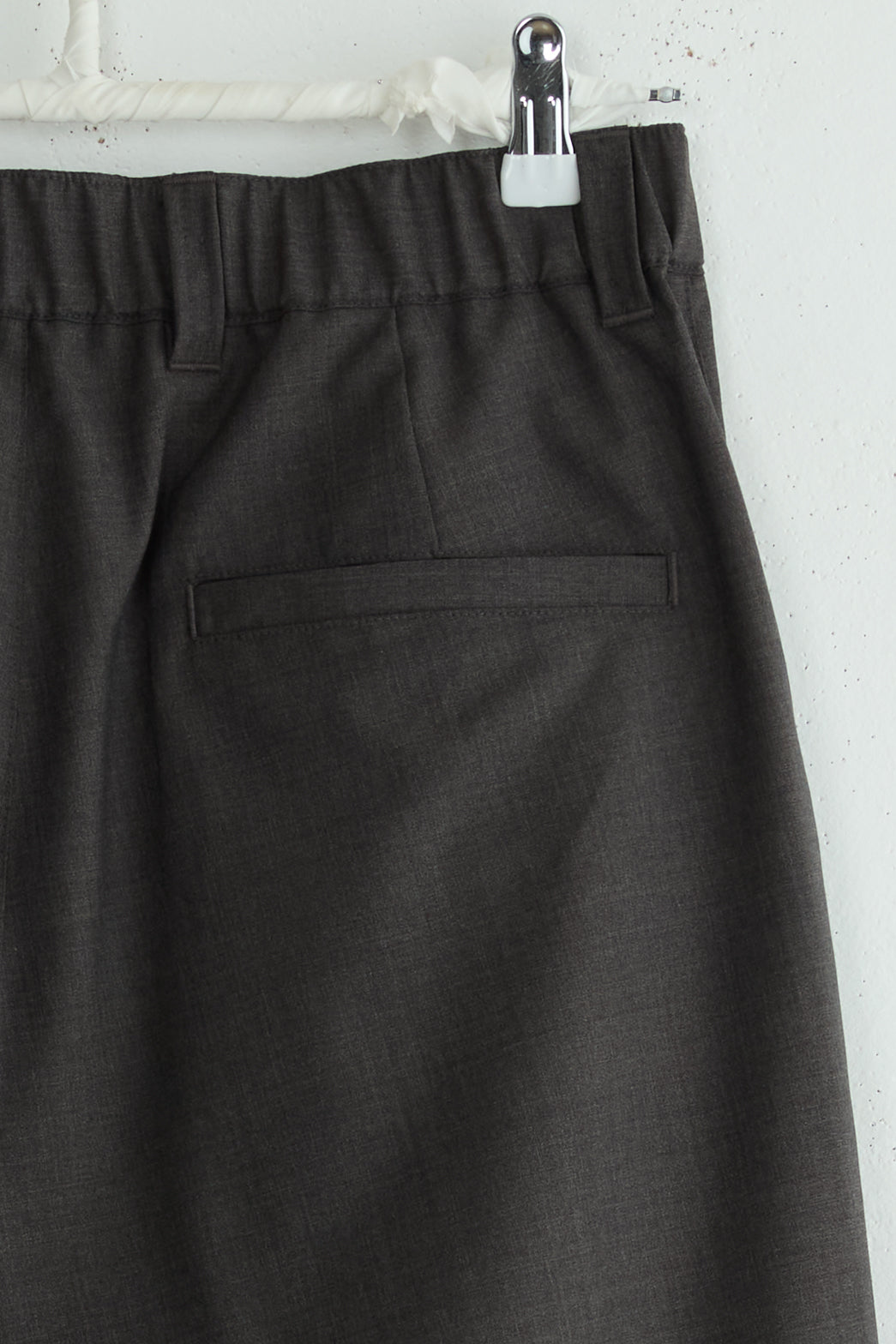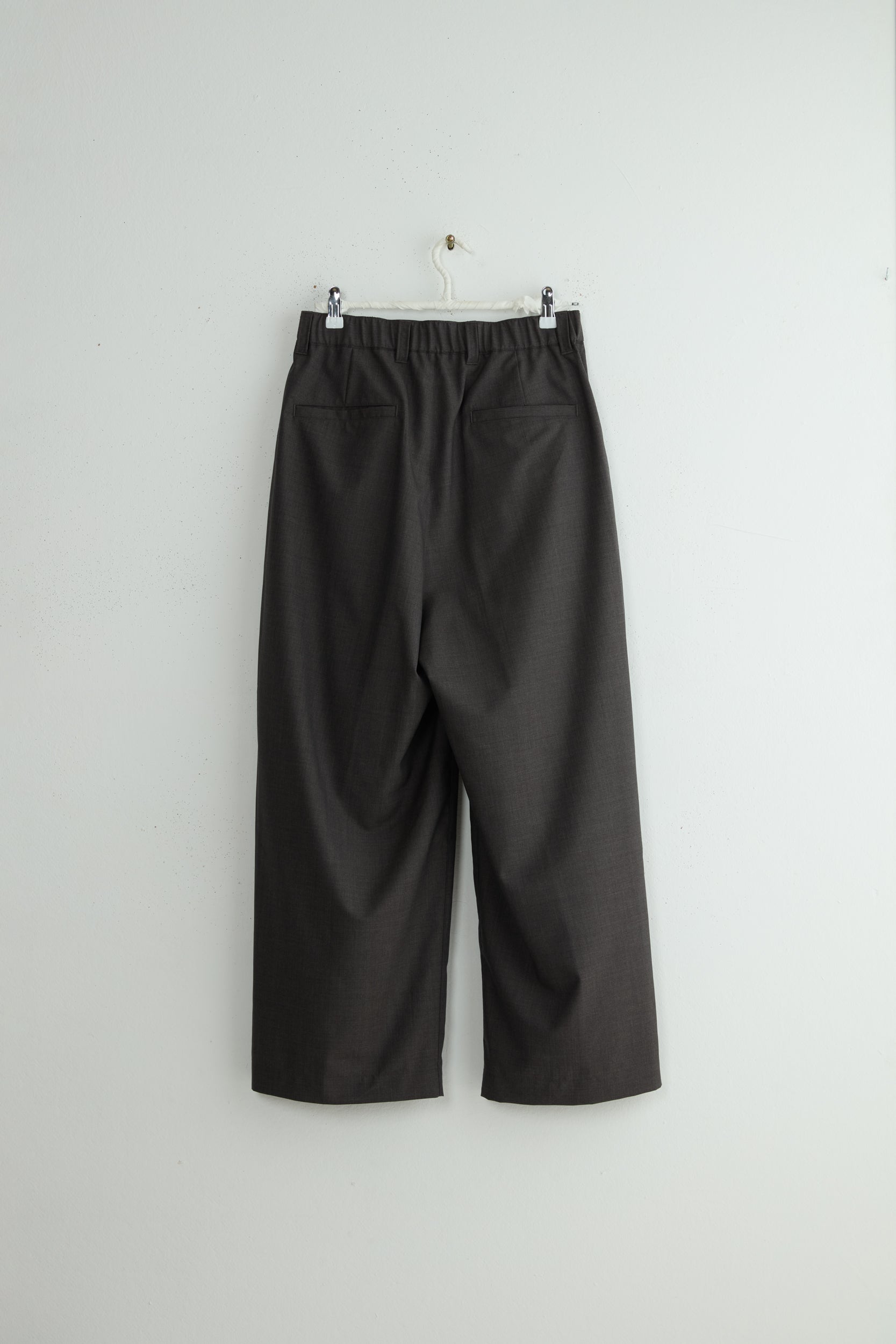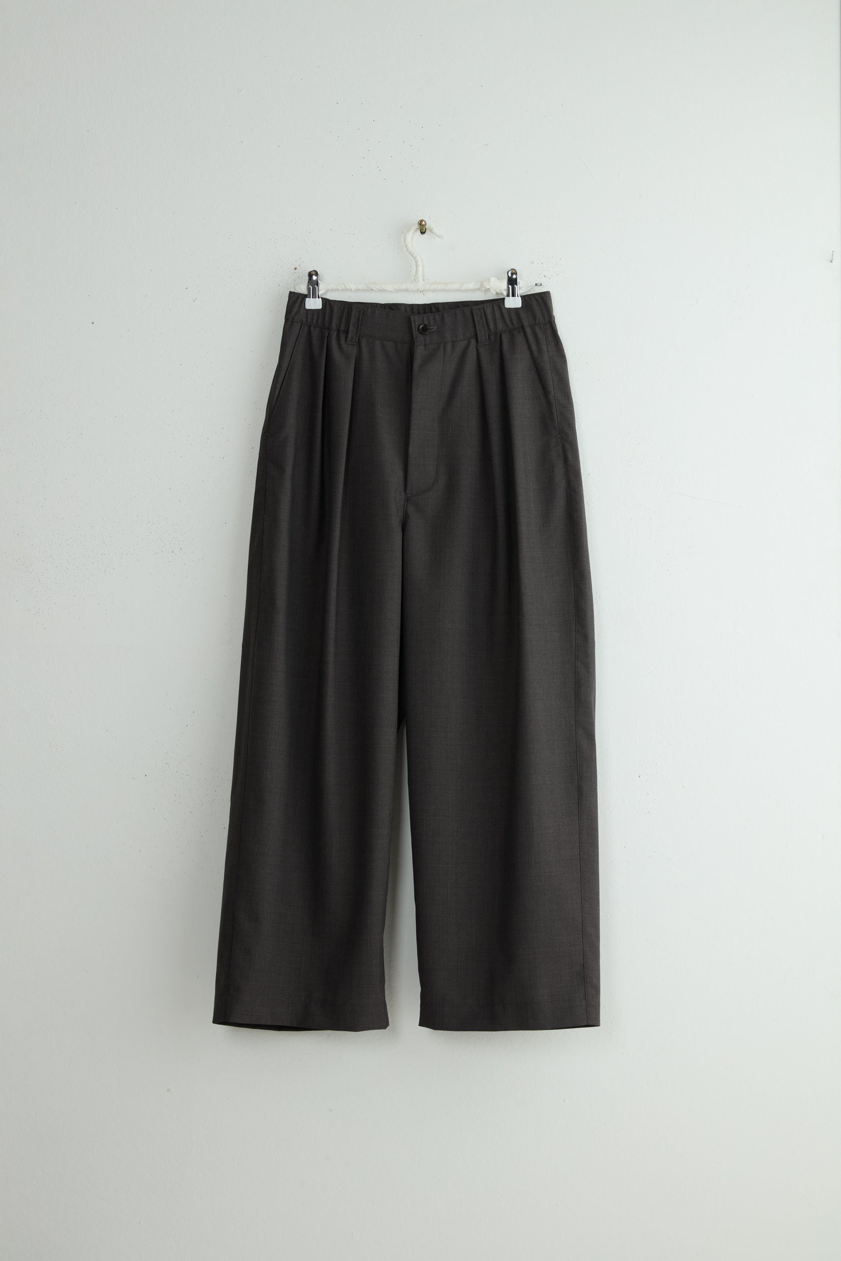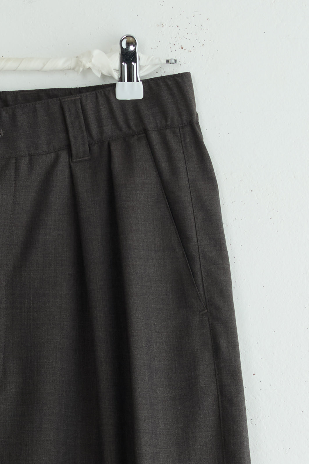 2-in-pleat Baggy Pants by TOUJOURS. Pleated elegant wide leg pants made of silky and breathable tropical wool, which is perfect for summer wear. slightly cropped inseam with two front pleats, high rise fit with button closure, elastic waist with belt loops, side slash pockets and back welt pockets. these shorts are wide legged and knee short. The fabric is both wrinkle-resistant and easy to handle, having the deodorizing and antibacterial effects unique to natural materials.