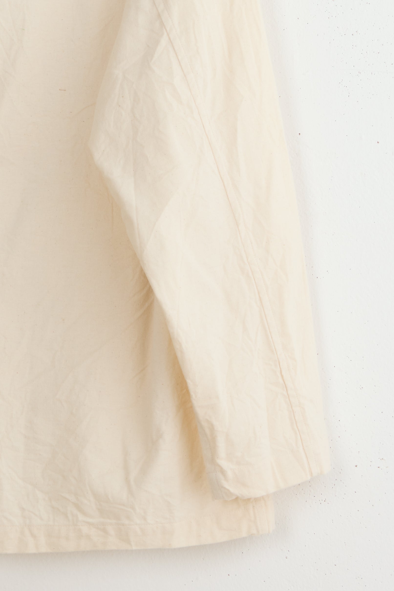 Atelier jacket by TOUJOURS. A clean buttoned jacket made of brushed raw cotton cloth. Relaxed fit with notched lapels, a single chest patch pocket, two deep patch pockets, and a white buttons closure at front.