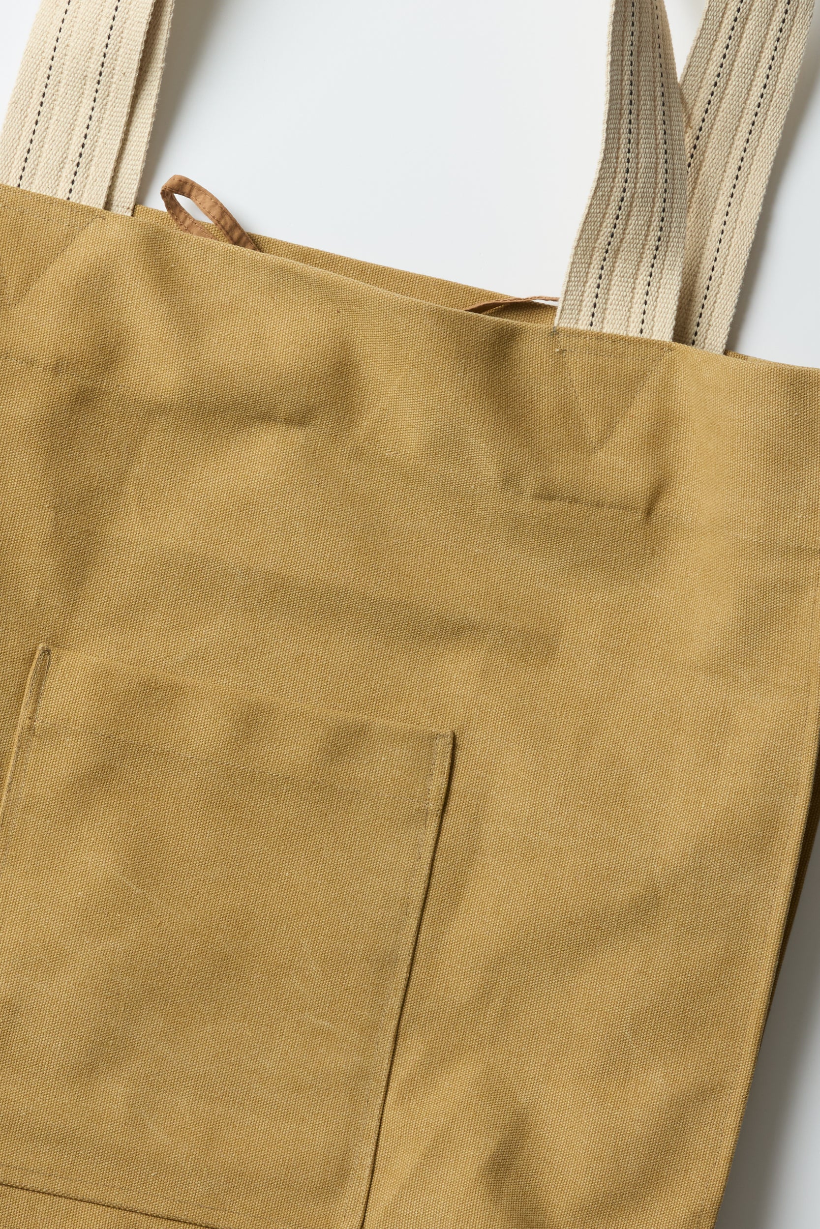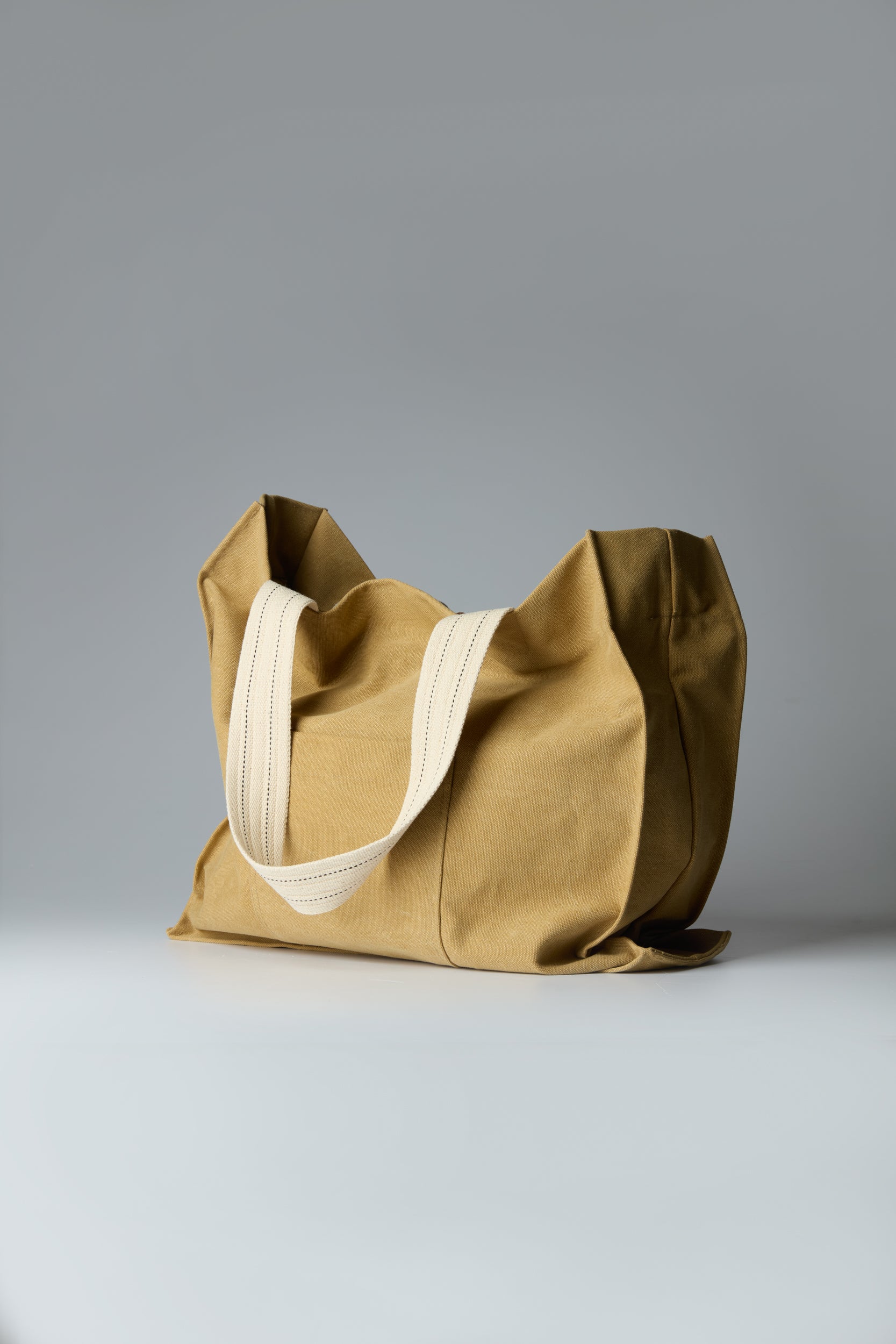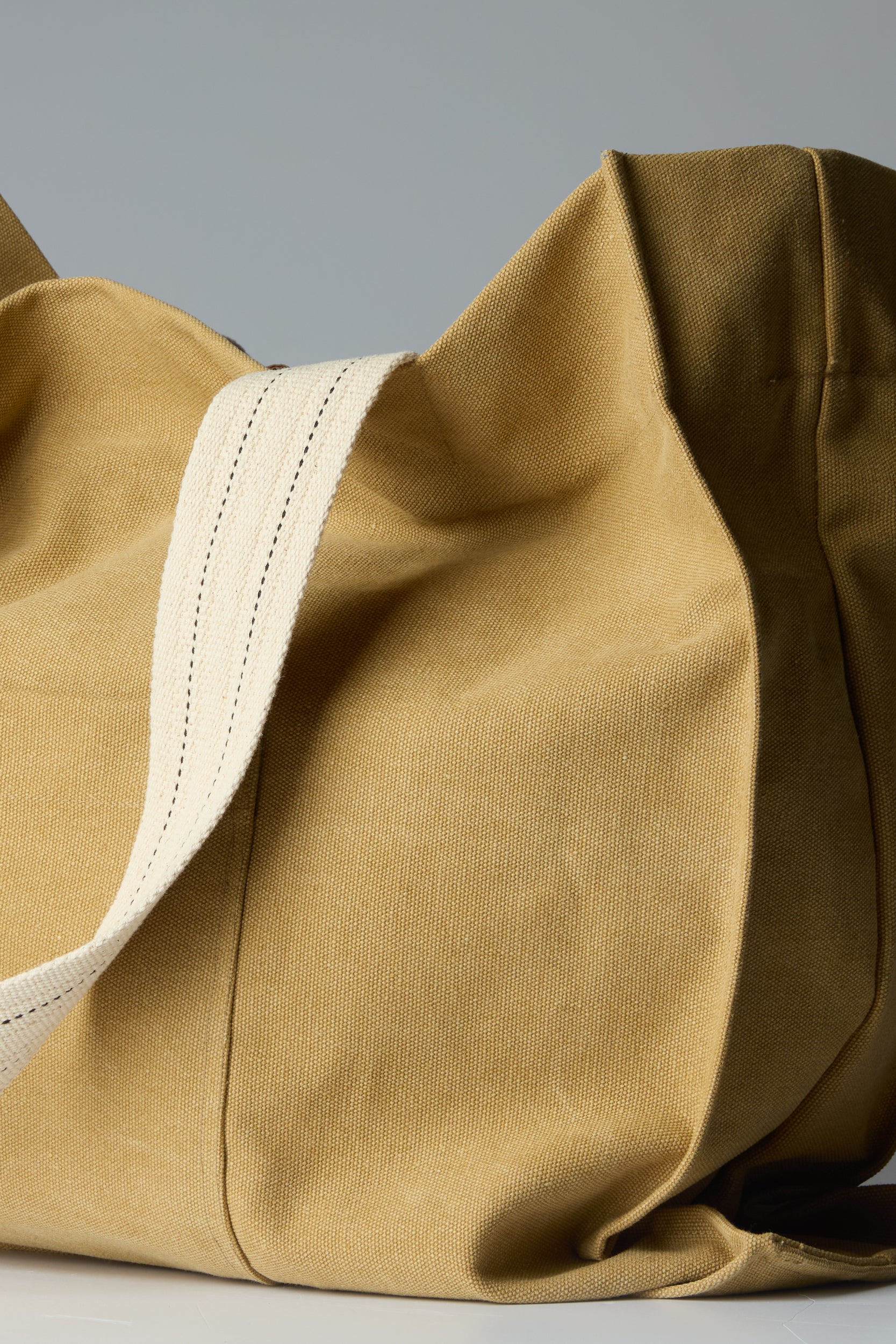 Big Young bag by Maya Zukerman. A big, square (46x43) shoulder bag made of heavy cotton canvas. Big inner and outer patch pockets and short heavy cotton straps.